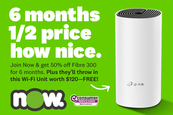 Get 50% OFF Unlimited Fibre Broadband for the first six months with Now, PLUS get a FREE Wi-Fi unit! EXCLUSIVE only through Broadband Compare.